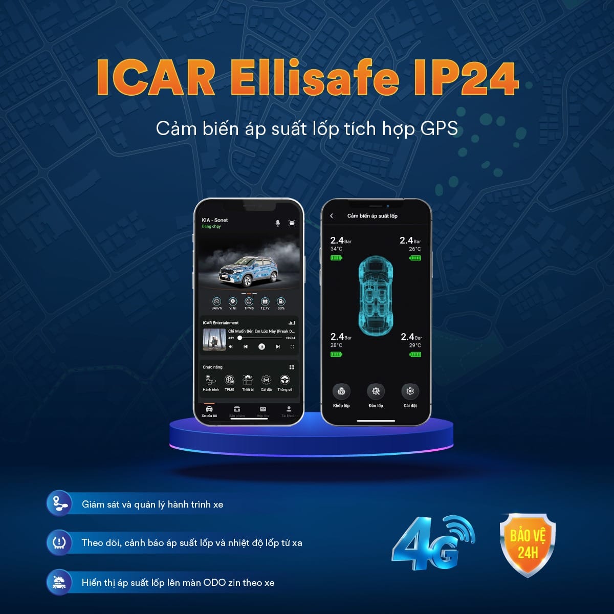 Tính năng ứng dụng ICAR đi kèm cảm biến áp suất lốp IP24l