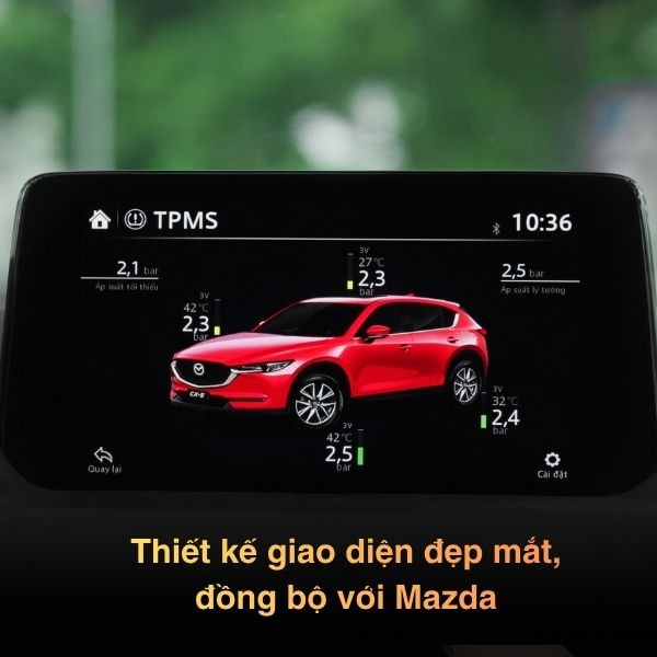 Nhờ thiết kế chuyên biệt cho các dòng xe Mazda có màn hình cảm ứng (Mazda 3, CX-5, CX-8, Mazda 6…), cảm biến áp suất Ellisafe J43 tự động kết nối và hiển thị thông số lốp ngay trên màn zin chỉ sau vài giây.