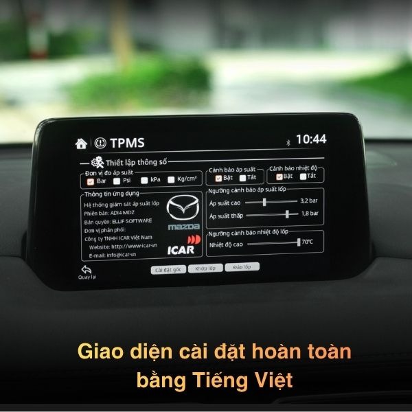 Giao diện của cảm biến áp suất Ellisafe J43 thiết kế hiện đại hiển thị trọn vẹn trên màn zin MazdaGiao diện hoàn toàn bằng tiếng Việt dễ sử dụng