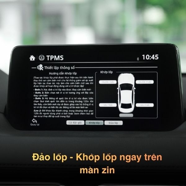 Chỉ với vài thao tác chạm, bạn có thể cập nhật vị trí cảm biến chính xác theo vị trí lốp thực tế, giúp hệ thống hiển thị đúng thông tin từng bánh.