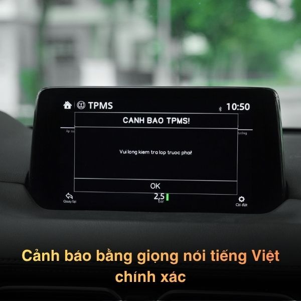 Ví dụ: Khi lốp bên phải trước bị non hơi, hệ thống sẽ thông báo “Lốp trước bên phải áp suất thấp” – giúp người lái nhanh chóng xác định vị trí cần kiểm tra.