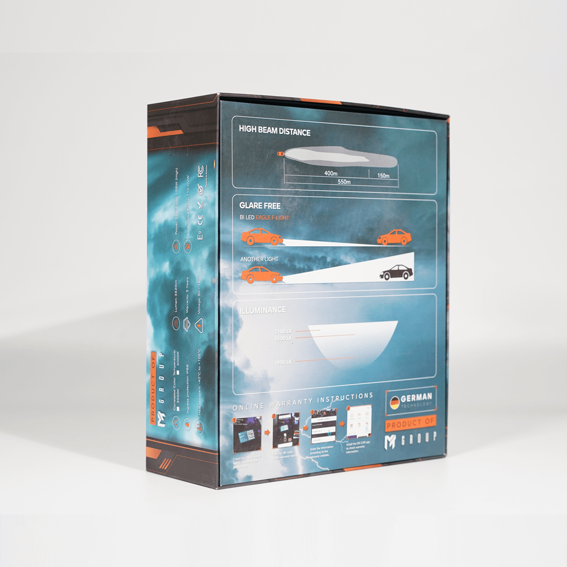 Bi gầm LED EAGLE F-LIGHT nhiệt màu vàng 3000K/ 5000K Cho nguồn ánh sáng vàng tự nhiên hoặc trắng ấm giúp phá sương và bám đường tốt, phù hợp di chuyển kể cả trong thời tiết xấu như sương mù, mưa lớn, đường núi. Với ánh sáng trải đều từ tâm ra hai bên, độ phủ từ chân sáng đến vị trí đường cắt rộng, gia tăng tầm nhìn cho người cầm lái.