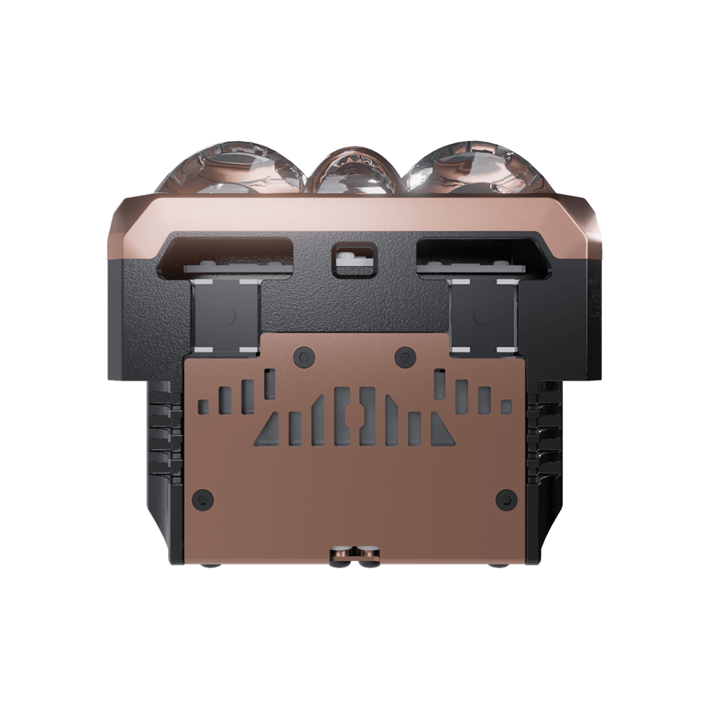 Các rãnh tản nhiệt được bố trí một cách khoa học dọc thân đèn, tạo thành những kênh dẫn khí tự nhiên, hoạt động cộng hưởng hoàn hảo với hệ thống quạt kép.